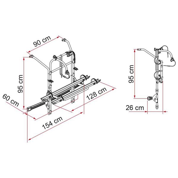 This bike rack is supplied as standard with two rails for two bikes, but can easily carry up to four bikes (or 2 ebikes) with the additional of Fiamma parts.