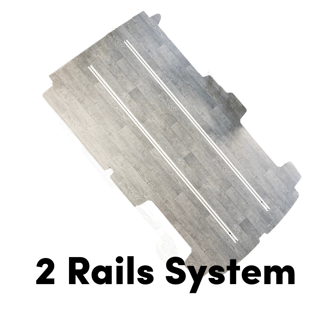 This system features two integrated rails, allowing secure installation of beds, tables, brackets, and other modular accessories. The floor is fully glued to the vehicle, with bolts added only at the ends of the rails for enhanced structural strength and safety.
