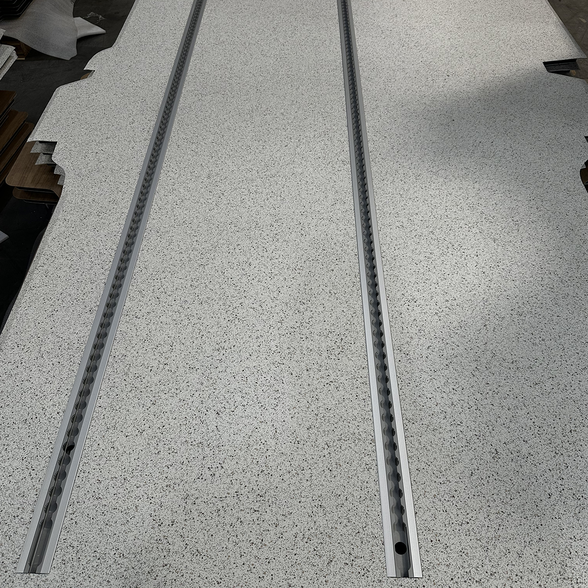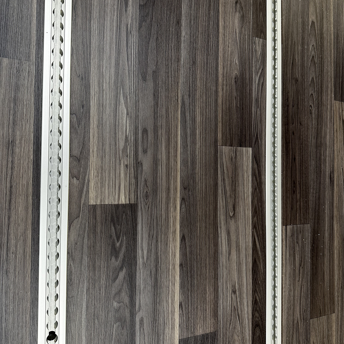 This version includes four integrated rails, providing maximum flexibility for securely installing beds, swivel chairs, tables, brackets, and a wide range of modular accessories. The floor is fully glued down, with bolts added only at the ends of the rails for extra strength and stability.