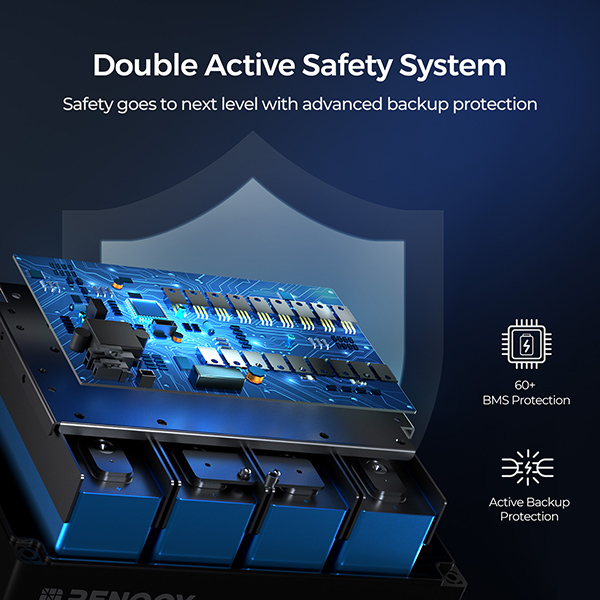 Equipped with a double active protection system with over 60 BMS safeguards and active backup protection, this battery ensures maximum safety during operation. Its flame-retardant UL94-V0 casing, IP67 waterproof rating, and ISO 9227 corrosion resistance make it ideal for challenging environments such as fishing, boating, and off-road adventures.
